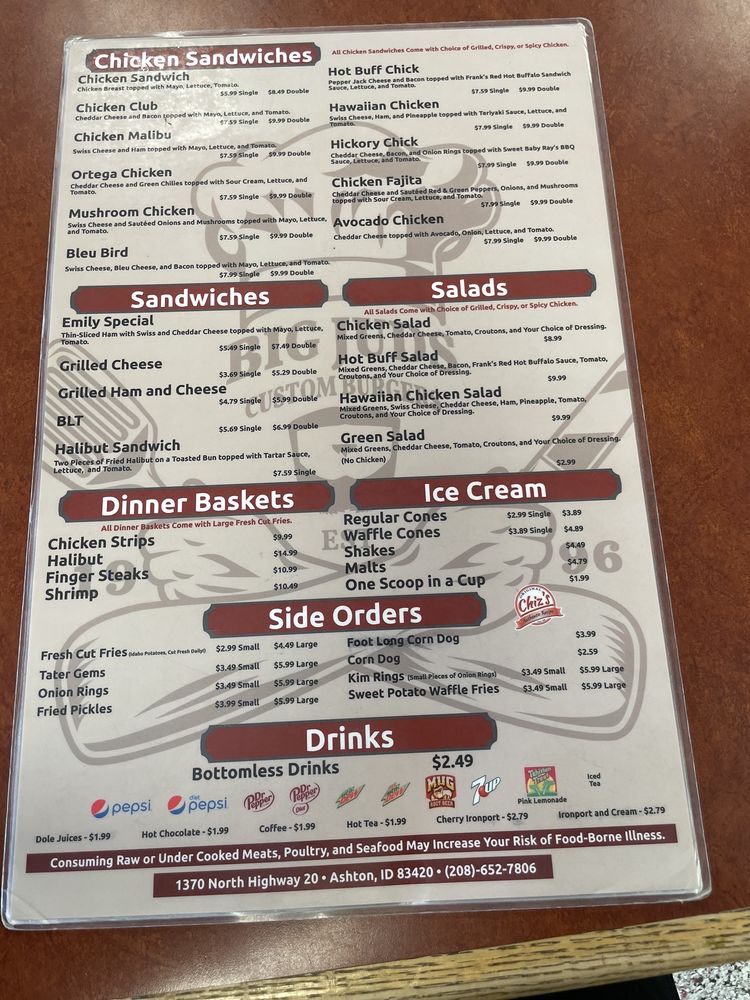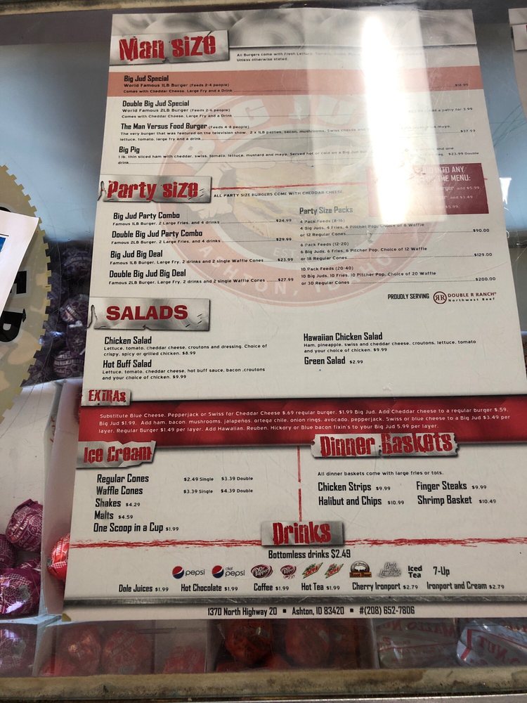 Big Juds, located at 1370 Hwy 20 in Ashton, ID, is a must-visit spot known for their oversized burgers and delicious fries. Customers rave about the generous portions and friendly service, making it a perfect stop for road trips or a quick bite. With options like the Big Jud burger, Hawaiian burger, and gluten-free buns available, there is something for everyone. The menu also features sweet potato fries and tater tots, along with a unique fry sauce that adds an extra kick to the meal. While some customers mention long lines, the overall consensus is that Big Juds is worth the wait for their tasty offerings. Whether you're a fan of classic burgers or looking to take on the Man vs Food 2 lb burger challenge, Big Juds is sure to satisfy your craving for hearty and flavorful food.