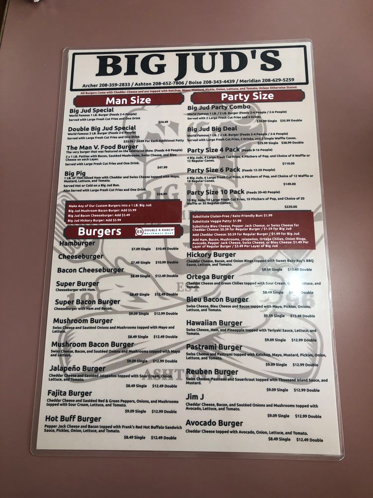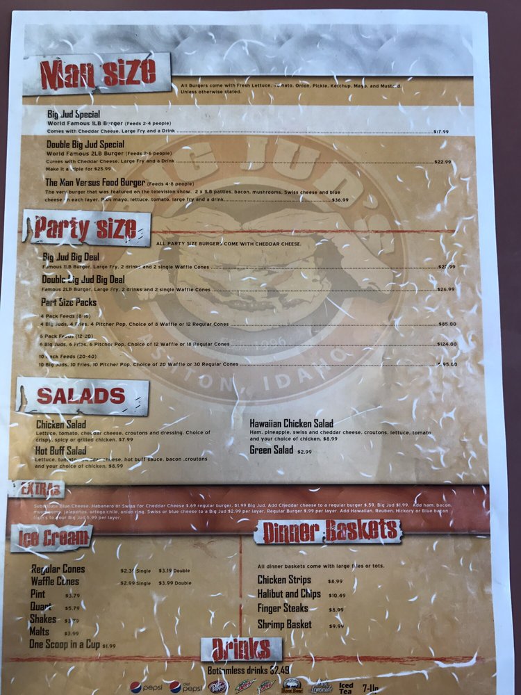 Big Juds Menu